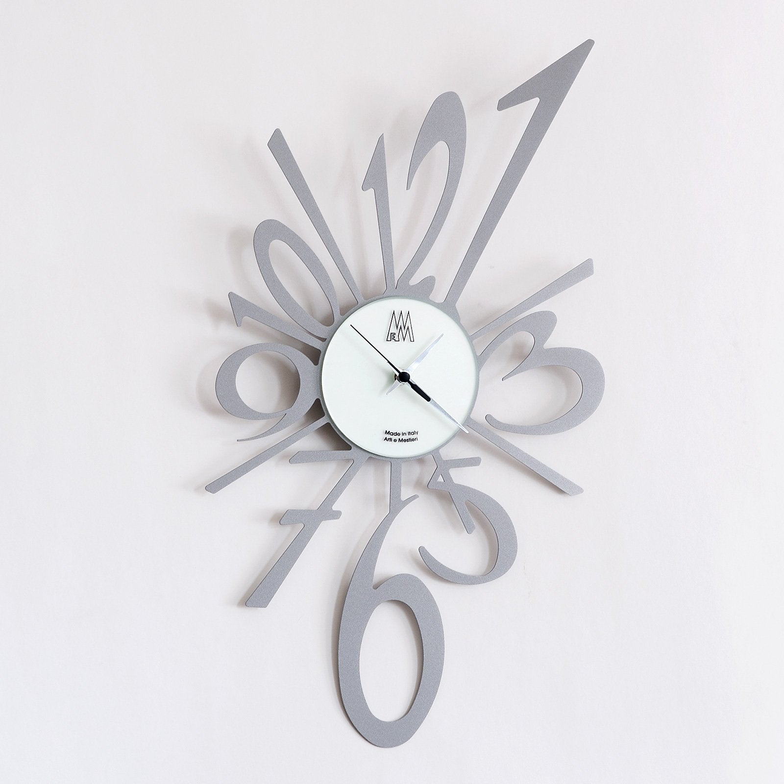- Caratteristiche: Orologio da parete di piccole dimensioni ma di grande impatto visivo. I numeri di diverse dimensioni conferiscono all'orologio un design irregolare e dinamico. Disponibile anche in una versione più grande